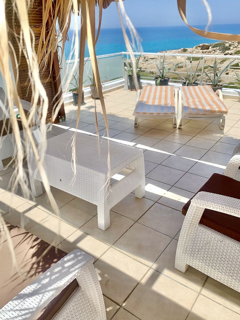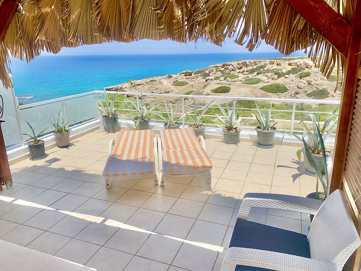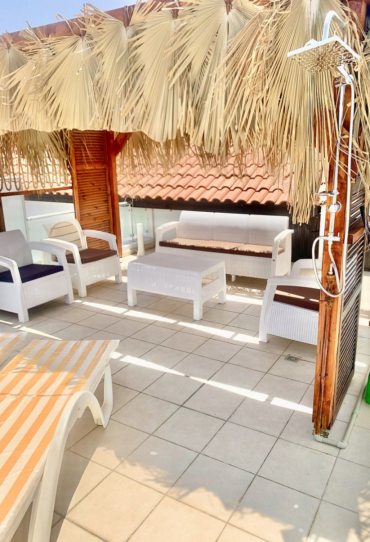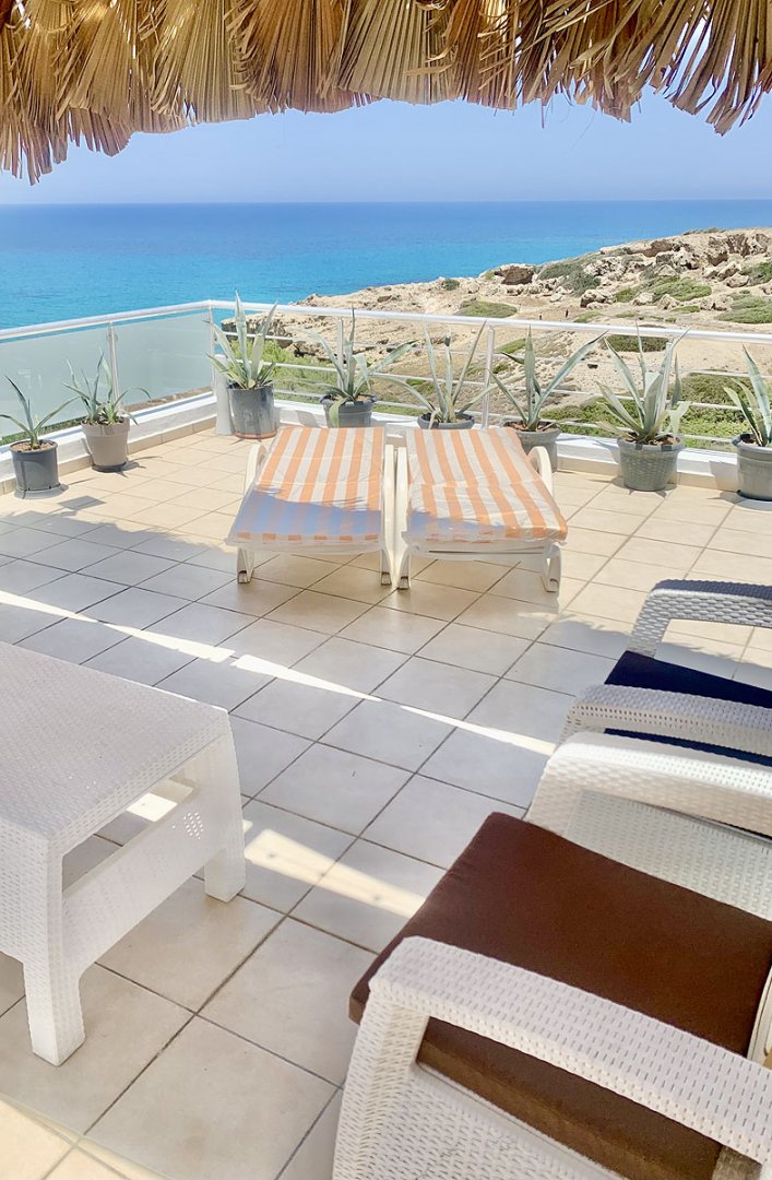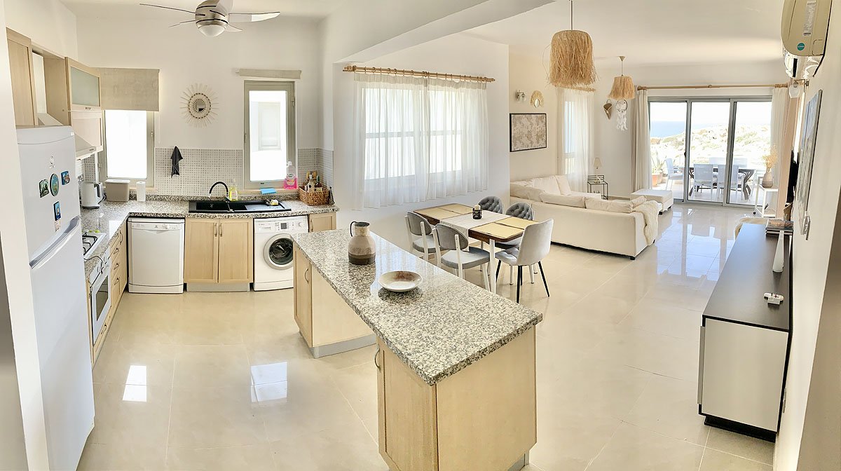 - oferuje 2 sypialnie, 2 łazienki z prysznicem i wanną, duży salon z aneksem kuchennym, dużym prywatnym tarasem z widokiem na morze, oraz bardzo przestronnym balkonem z wyjściem bezpośrednio z salonu.