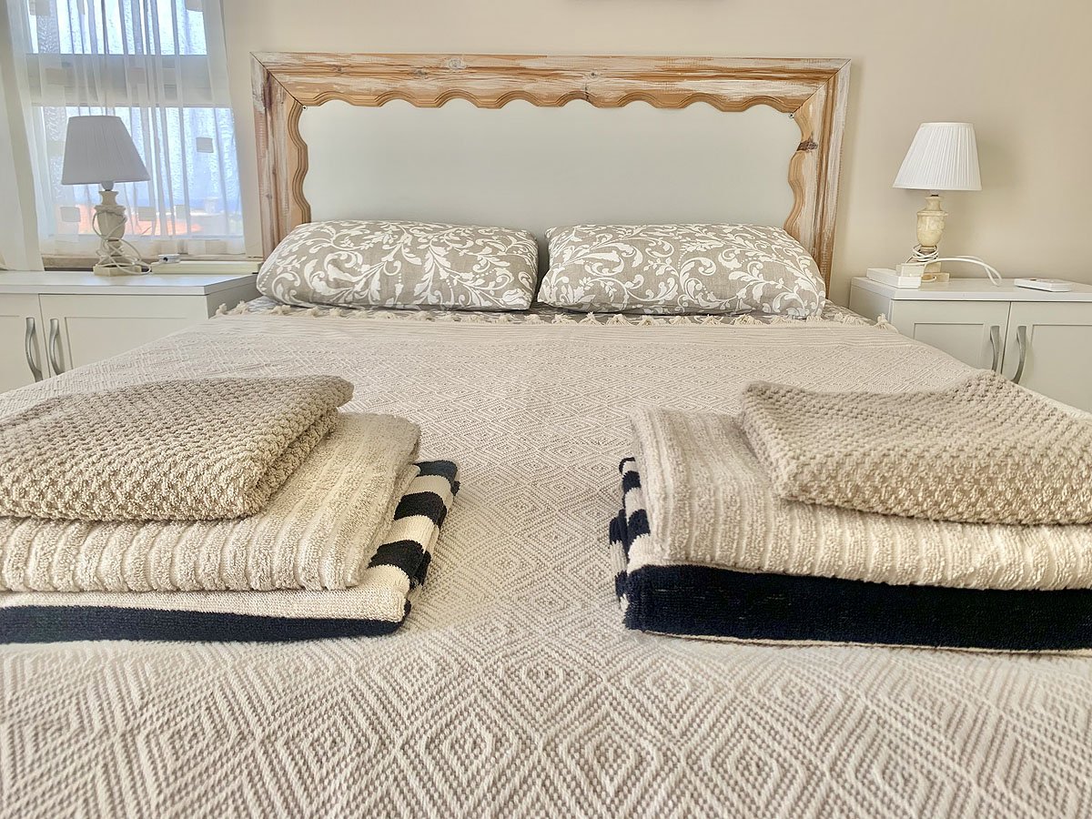 Sypialnia 1 - wyposażona jest w łóżko małżeńskie, dużą szafę, klimatyzację, łazienkę z prysznicem