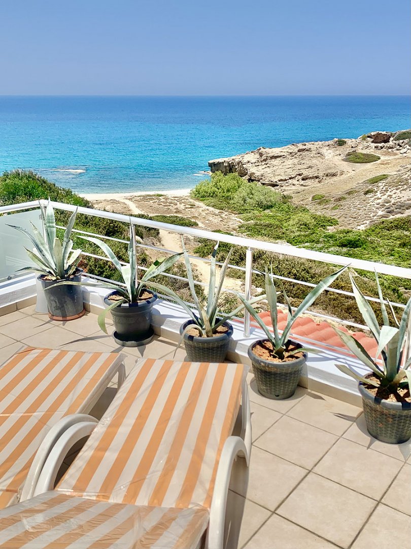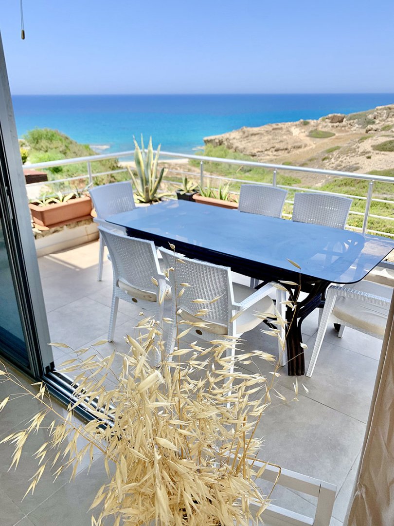 - oferuje 2 sypialnie, 2 łazienki z prysznicem i wanną, duży salon z aneksem kuchennym, dużym prywatnym tarasem z widokiem na morze, oraz bardzo przestronnym balkonem z wyjściem bezpośrednio z salonu.