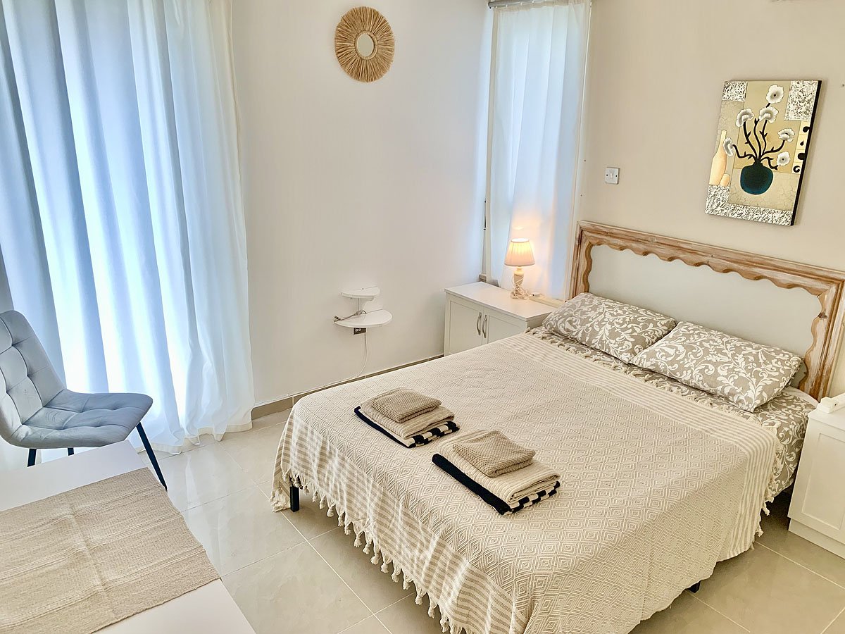 Sypialnia 1 - wyposażona jest w łóżko małżeńskie, dużą szafę, klimatyzację, łazienkę z prysznicem